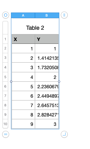 - resize the table to have one body column (B) and eleven body rows (2-12)