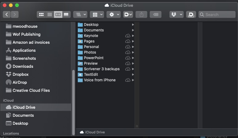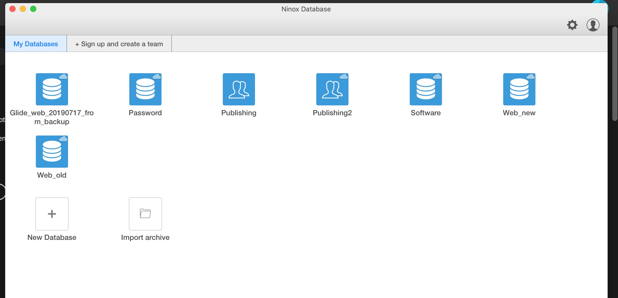 However there is only one database showing (Publishing), not the one I want. What I now realise is (it seems) Ninox does not store DBs designated as Cloud in the local iCloud, but only on Apple. Here's a shot of my Ninox databases screen (messy with test dummies):