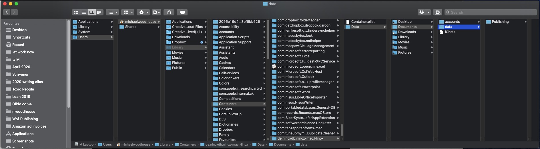 Which gets me back to Ninox's cryptic instruction to access the files via Terminal.