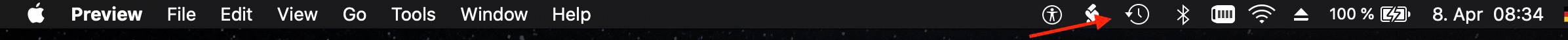 If Time Machine is not shown in the main menu bar, add it in the System Preferences > Time Machine.