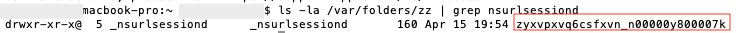 drwxr-xr-x@  5 _nsurlsessiond   _nsurlsessiond   160 Apr 14 18:32 zyxvpxvq6csfxvn_n00000y800007k