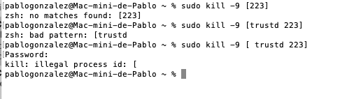 Now, take a look again at the Activity monitor, and look for the trustd process, that is one of the top 3 or 4 processes in the list. It has a unique process id, the PID number (for example 219).