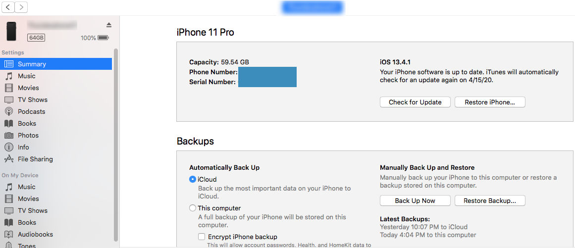 I can sync my iPhone 11 Pro running iOS 13.4.1 with my mac mini running macOS High Sierra running iTunes 12.8.2.3