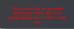 This account has no reachable address pleas sign in to appleid.apple.com in order to add one