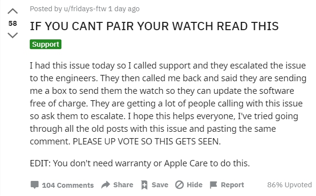 Unable to pair Apple Watch with iPhone after OS update