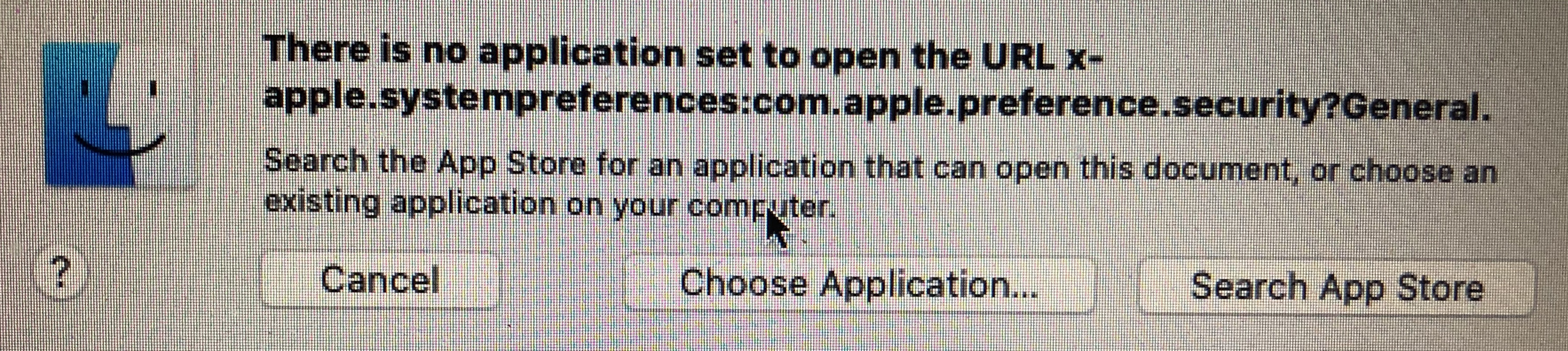I have recently tried to install/update several things on my MacBook. These would be updating my printer software and trying to install an update for Steam. Both times it goes through all of the installation steps normally, but stops before it is done with the message in the picture. After that message is displayed the installation is stopped and will not progress any farther. I have to Force Quit the installers. Does any one know how to fix this? It is almost like it is trying to bring up the security settings but something is broken somewhere. Thanks for your help.