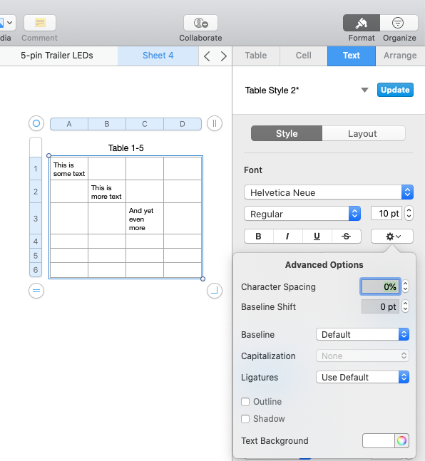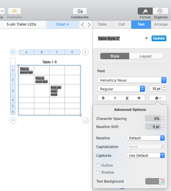 Gray Highlighting in Numbers