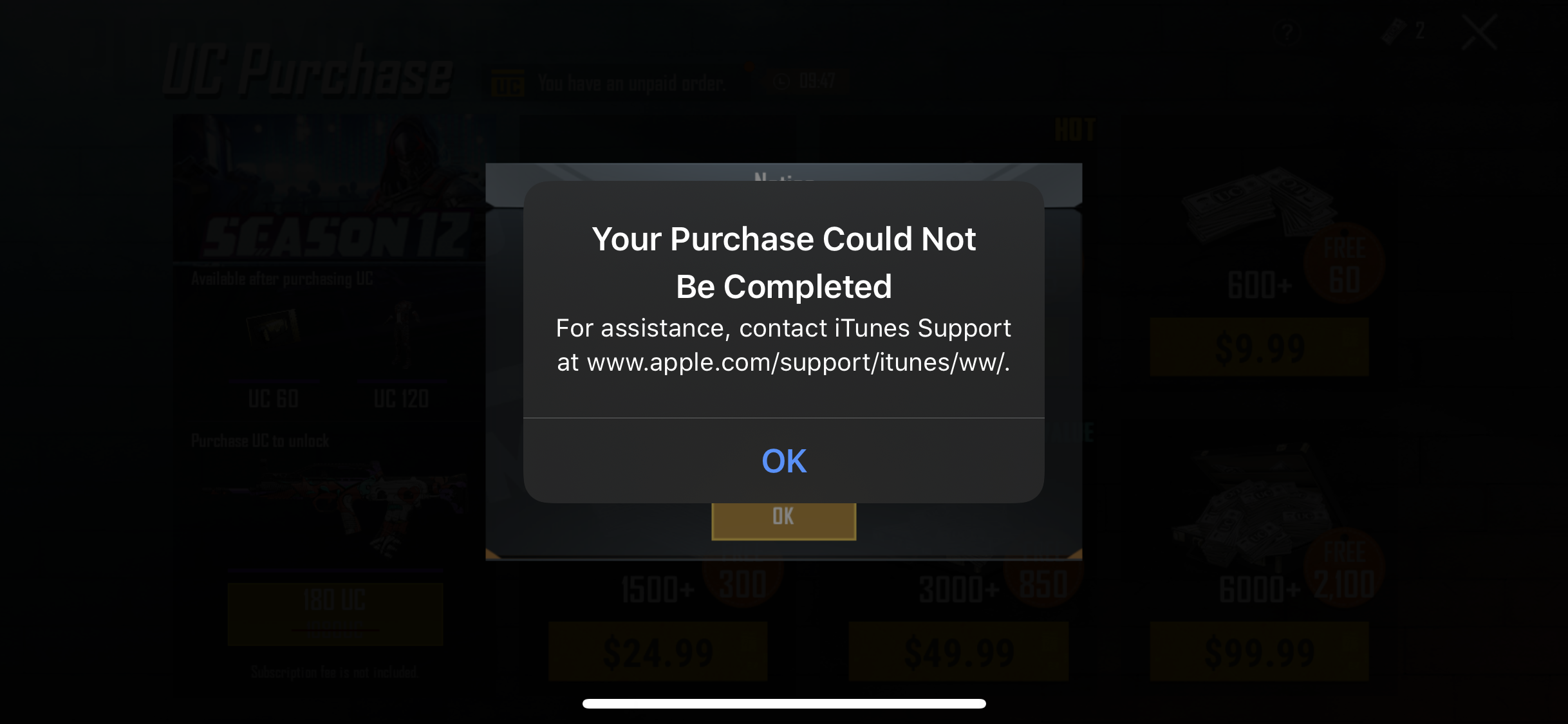 When I want to buy in app purchase they show me your purchase could not be completed . Or when I want adding funds to my Apple ID