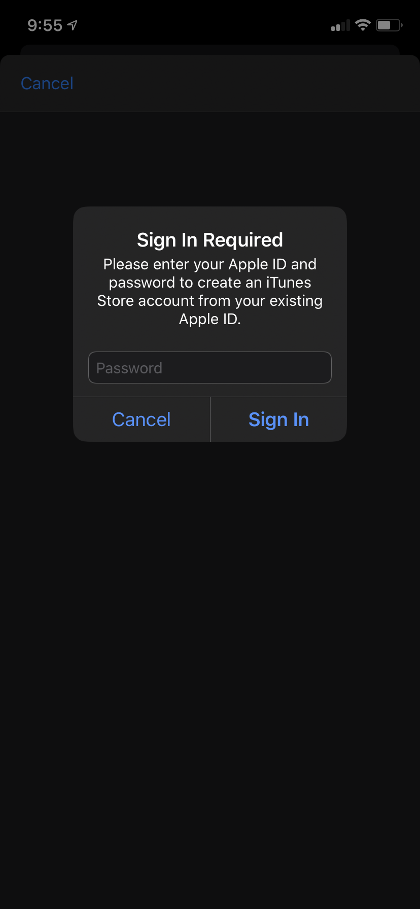 Signing in to APP STORE