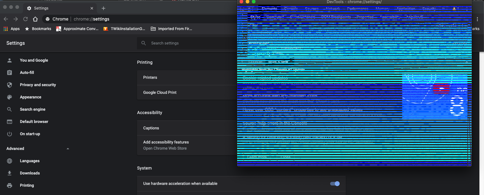 Started seeing these strange gradient lines across the screen in Google Chrome, but they often don't go beyond the fold of a website. The mouse is above the lines and they don't take up the whole screen, making me think it is a software issue. I am using an external display, but the result is the same on my almost 4 month old 16" MacBook. Safari is not showing the lines.... Any ideas?