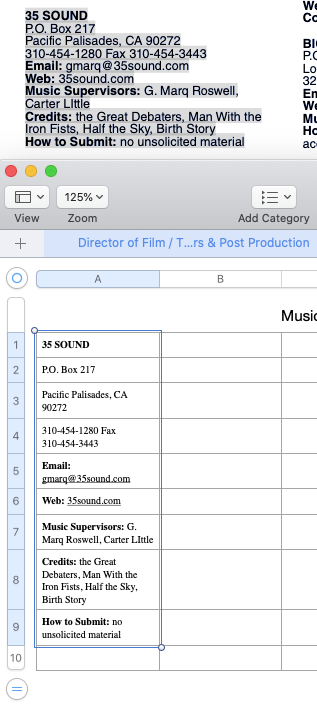 Hi - I have a data base on PDF (Just how it was provided to me) that I am trying to put into a Numbers spreadsheet.