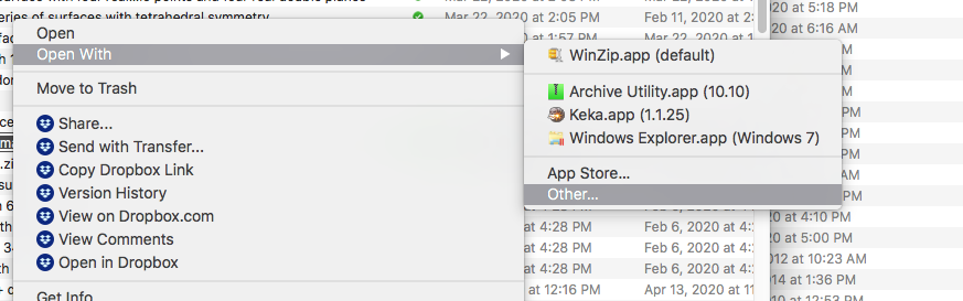 high sierra insists on trying to open zip files with winzip because i dl'd a demo of winzip for some arcane zip file.