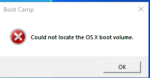 If I select "Restart in Mac OS X..." - I get the error "Could not locate the OS X boot volume."