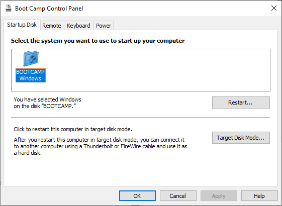 and if I open the Boot Camp control panel, it's only showing the Windows option: