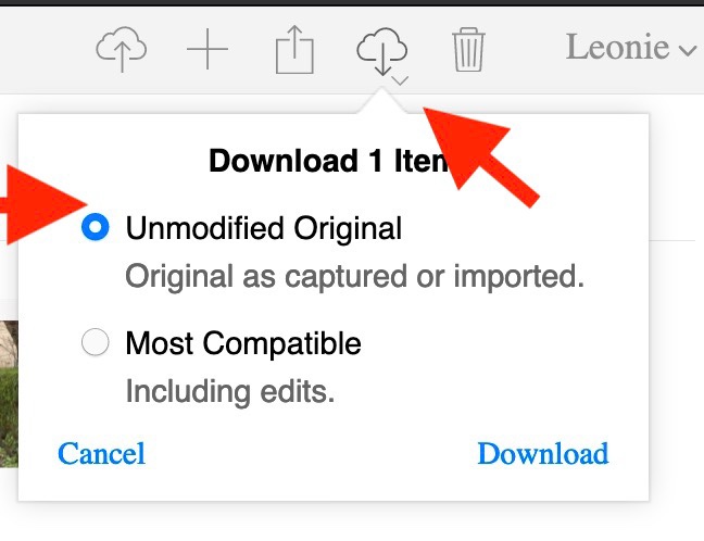 There is tiny "v" arrow below the downloads button, that will disclose a menu, where you can select the full size originals: