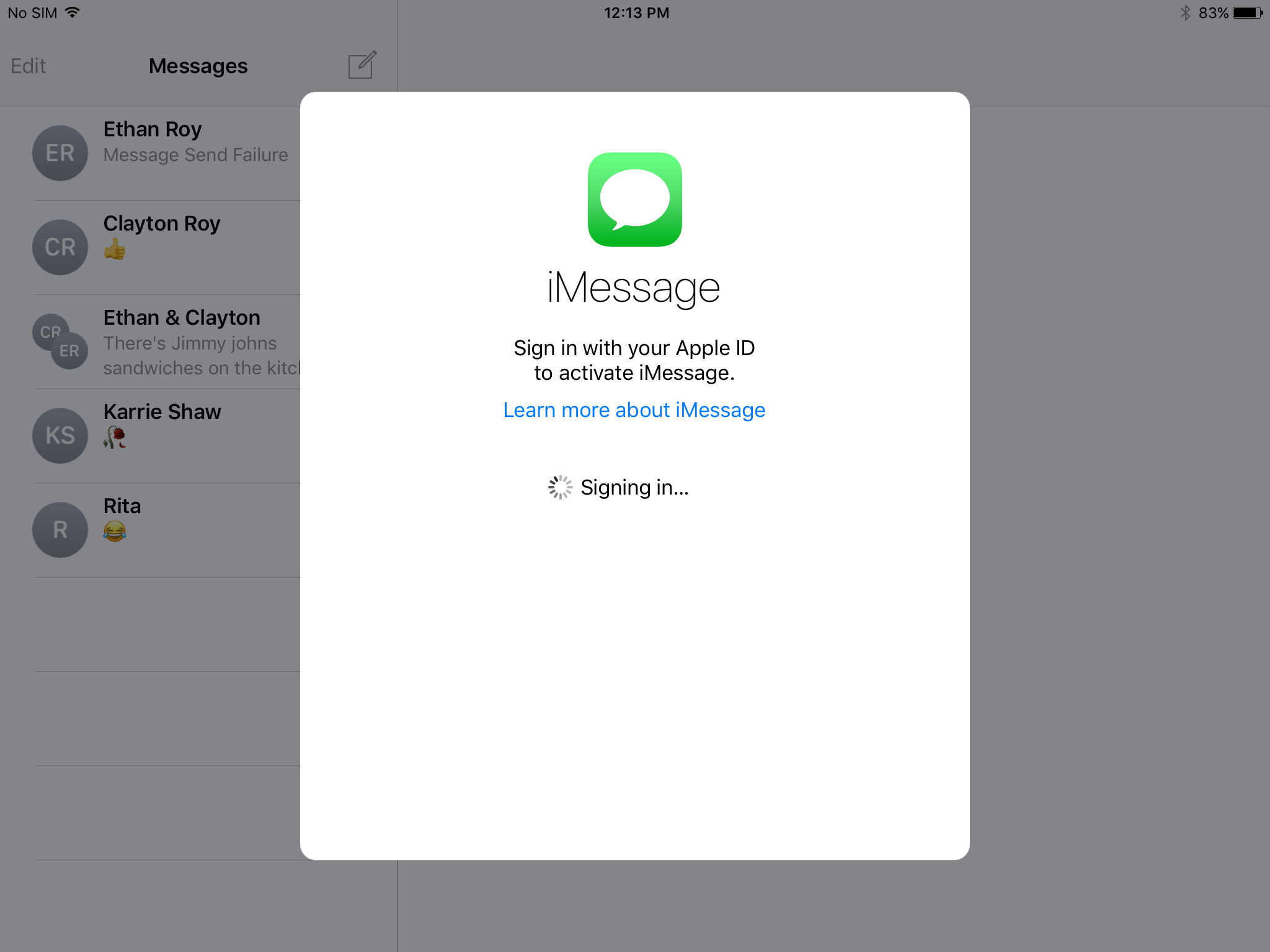 I cannot sign into iMessage on my ipad. I enter my id & password and it just rolls - - forever. I've tried the troubleshooting steps to no avail. I can't go to settings > messages > turn of imessages because it just rolls - - it wont let me in!! How do I fix this frustrating glitch??? I've been using iMessages for YEARS and all of a suddent it wont work.... what gives??