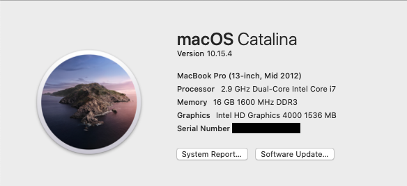 MacBook Pro 13", macOS 10.15