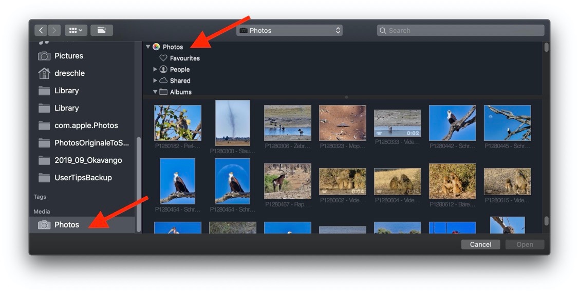 To send out files for printing, if the app doesn’t support accessing your images via Photos Browser, you’ll have to export (or drag them) out of Photos first, say to the Desktop, or a folder.