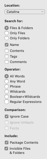 Type in the name of the file and hit return. It will search the startup drive first by default. Change the top drop down menu for each drive you want to search.