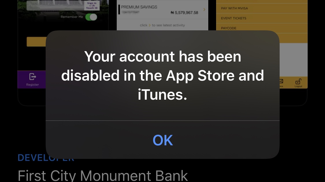 Please I require kind assistance. Whenever I try to download an application or update an application I get a notification display of “YOUR ACCOUNT HAS BEEN DISABLED IN THE APP STORE AND ITUNES”