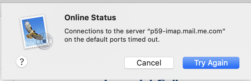 connections to server "p59-imap.mail.me.com" on default server timed out what's the solution?