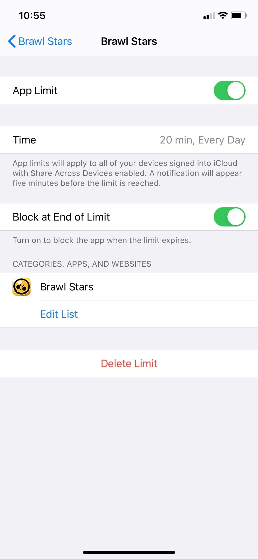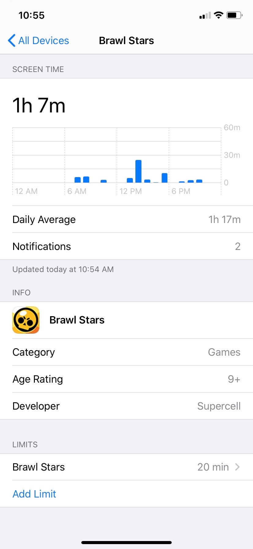Am I missing something when setting up screen time and limiting Brawl Stars? I have the game set up to be blocked after 20 mins, yet my child is still able to play 1hr 17mins. How is this possible?
