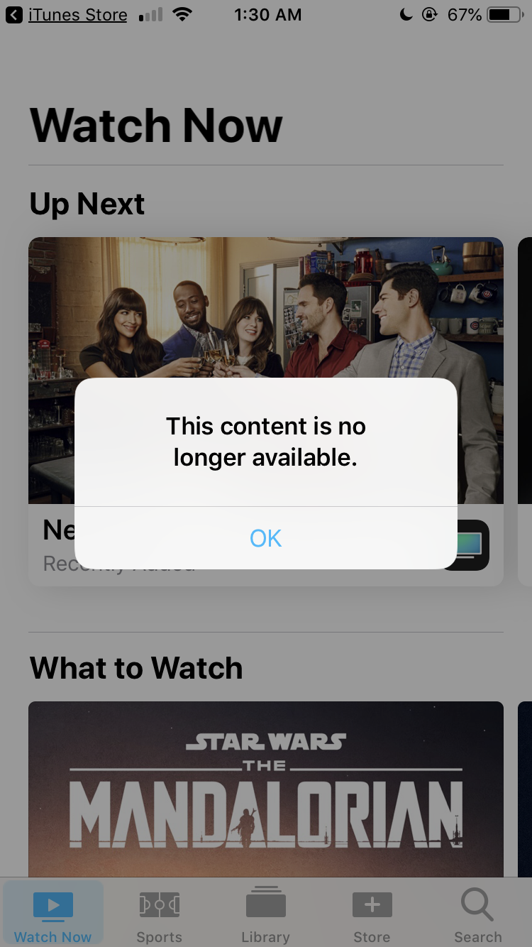 Hi. So I subscribe to Apple TV to be able to watch Defending Jacob , but every time I open the show via ITunes and it takes to the Apple TV app, there’s a message that says that the content is no longer available? Is there a way to fix this?