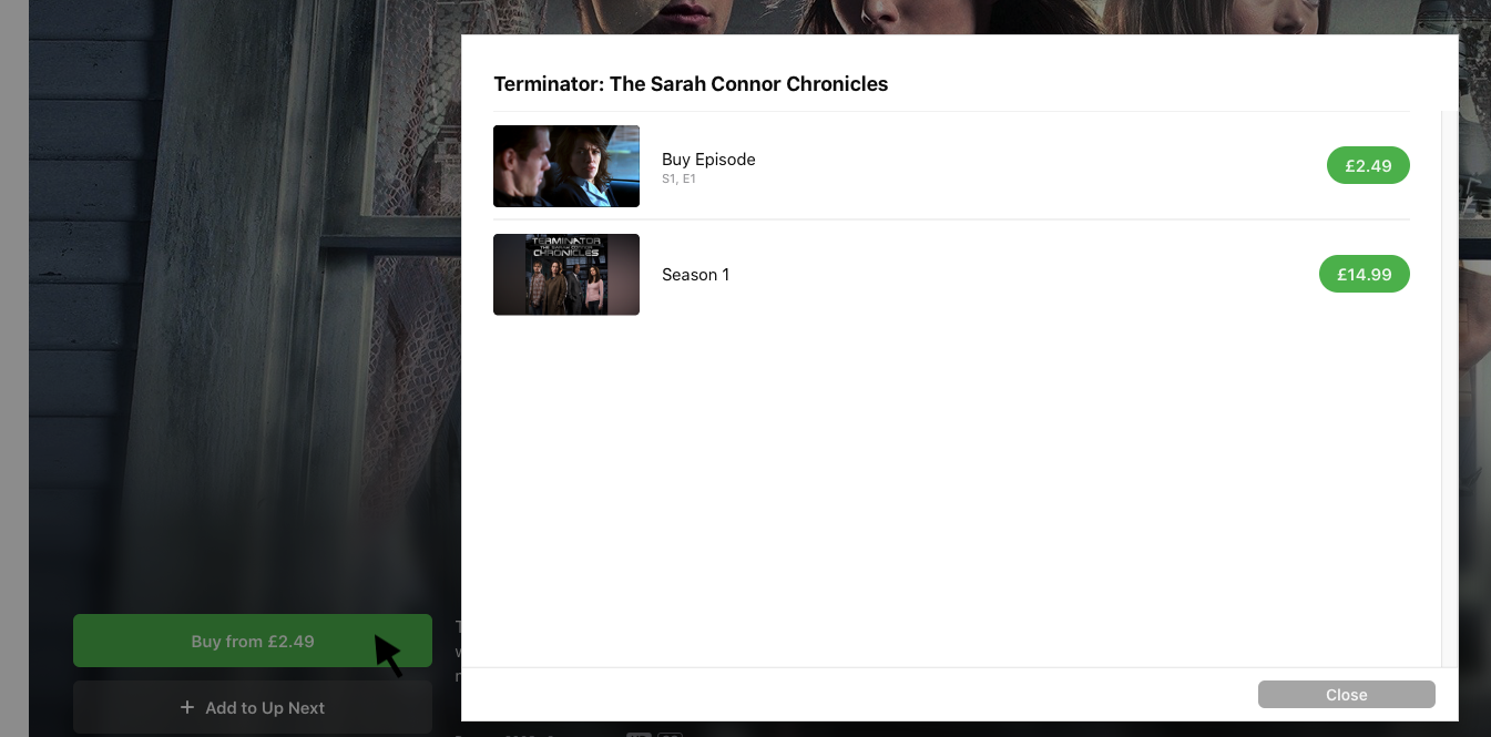 Clicking on an episode 'Buy From' only shows how to buy that episode or the whole series..