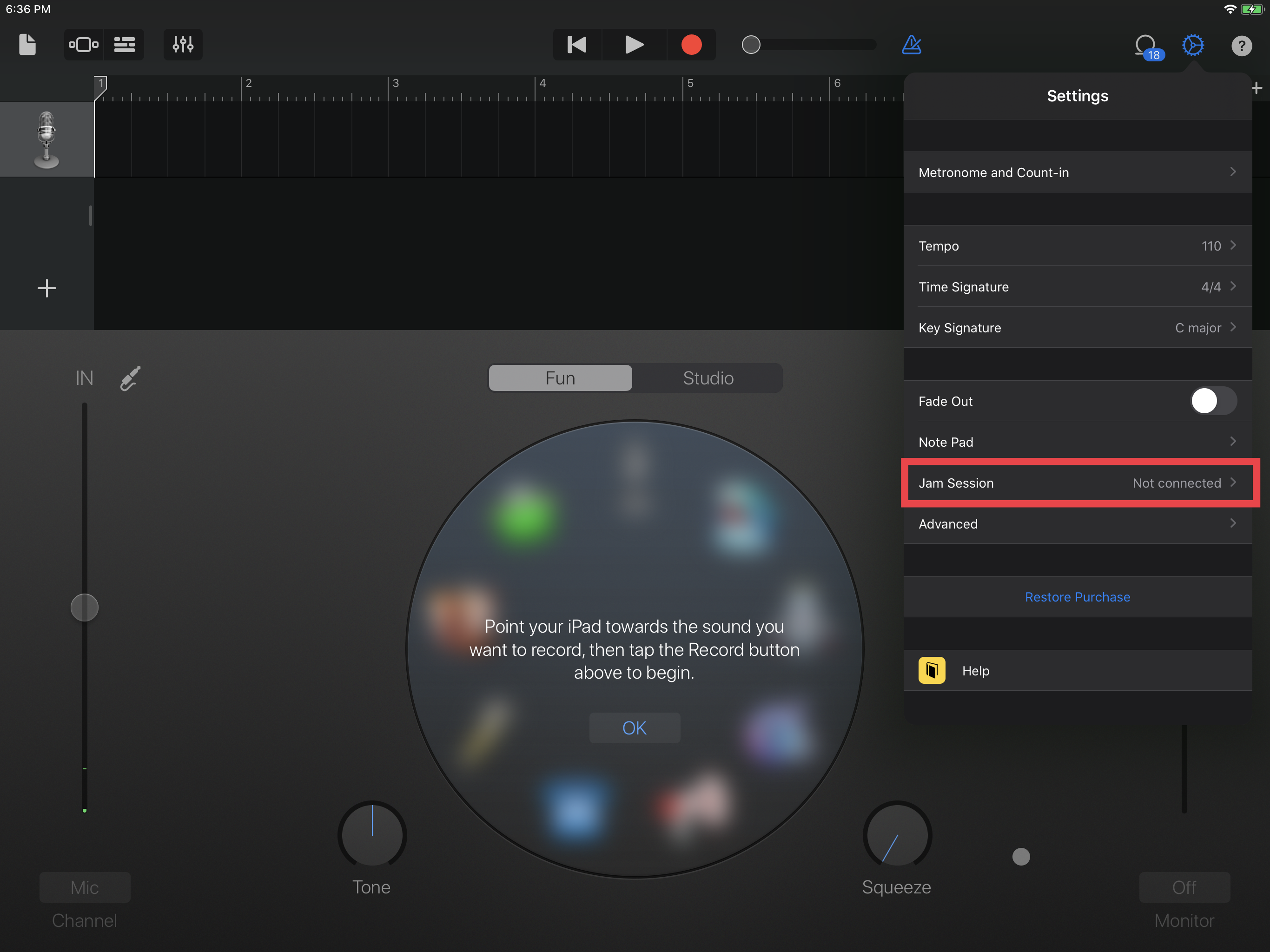 No Garage Band Jam Session button in iPadOS 13?