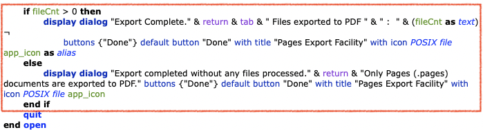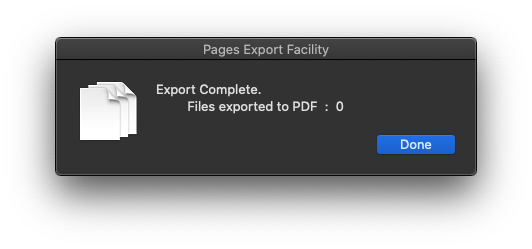 buttons {"Done"} default button "Done" with title "Pages Export Facility" with icon POSIX file app_icon as alias