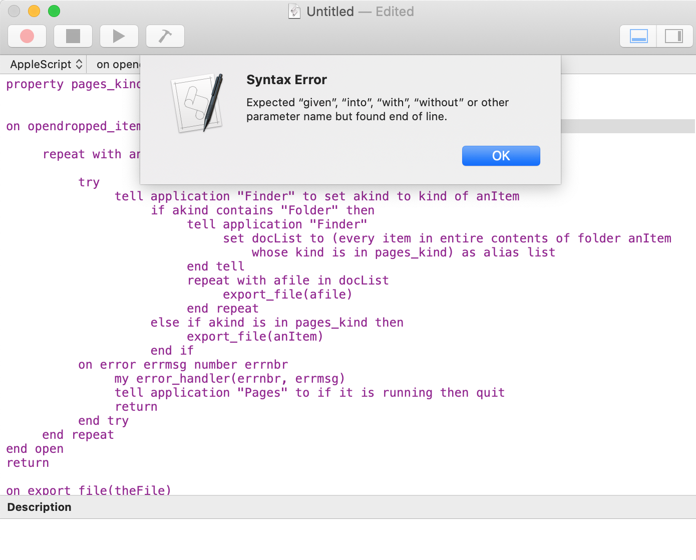 display alert "You need Pages v5.6 or later to run this script" giving up after 10