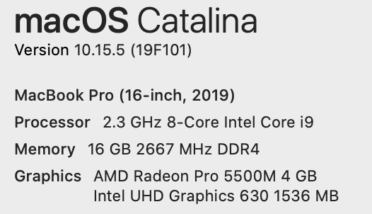 System model name: MacBookPro16,1 (Mac-E1008331FDC96864)