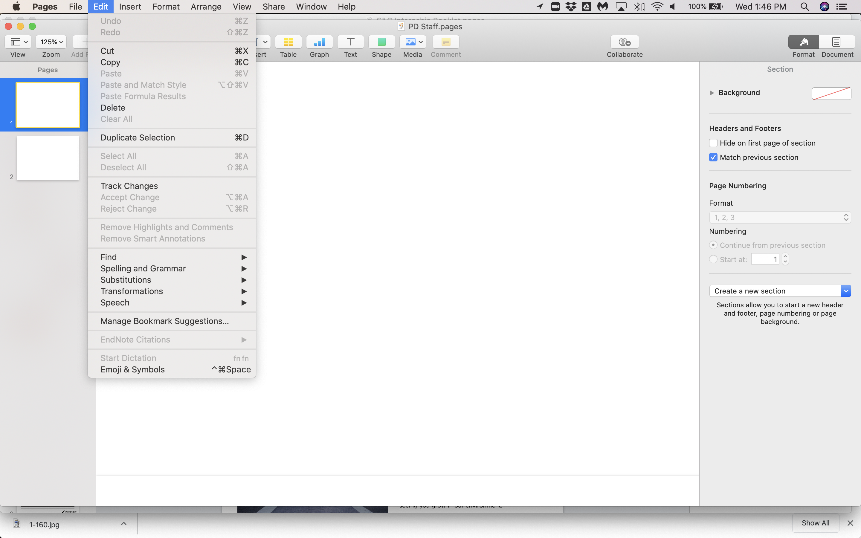 I am clicking copy and going to the new document, but the new document does not allow me to paste and does not have the paste option in the menu bar.