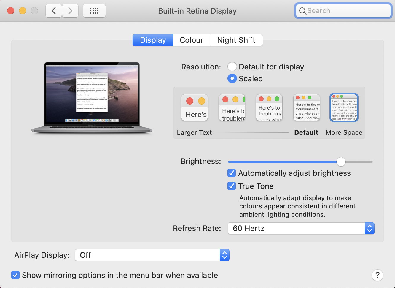 About Macbook Pro 16 inch (2019) scaled resolution.