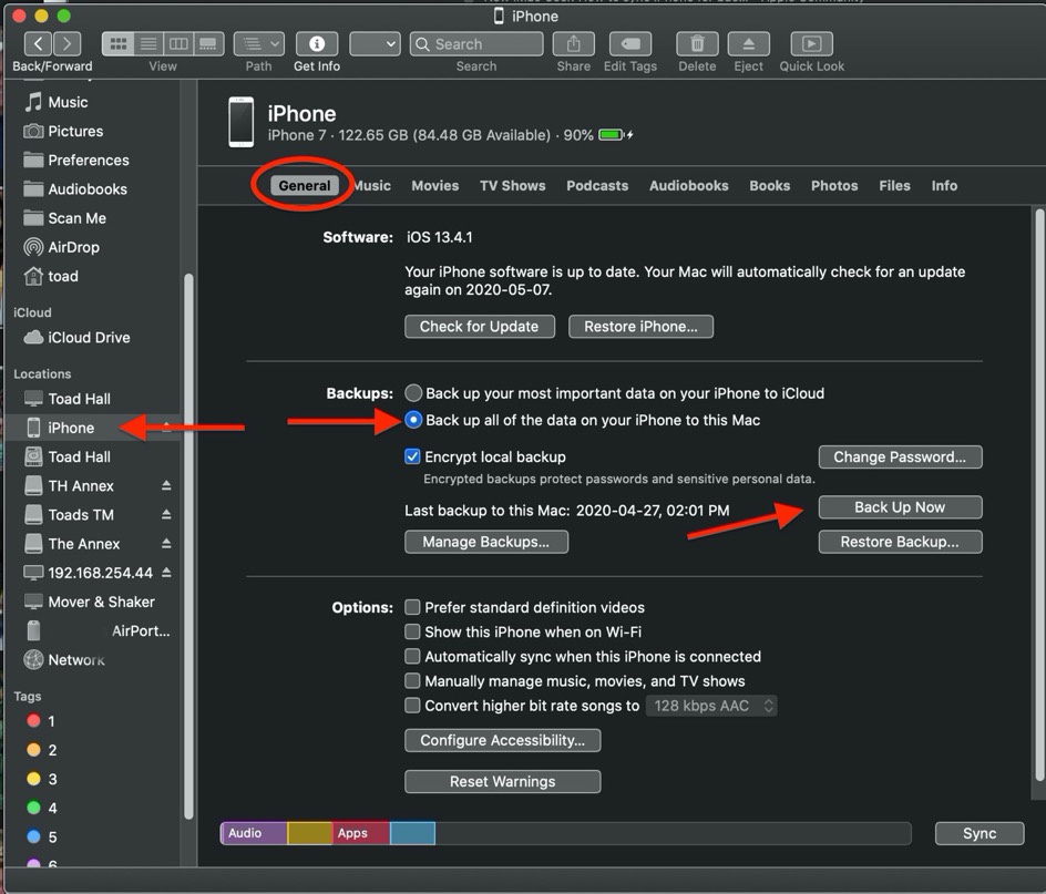 New iMac User. How to sync iPhone for back up using iTunes? Phone icon not showing up.