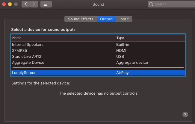 If I look at my Mac's Audio Output settings, I still have "LonelyScreen" listed as an output device and I really want to get rid of it.