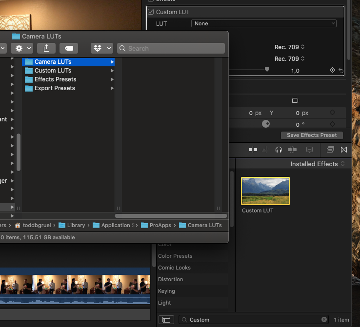 One other factor is the folder names, which depends on whether or not your have the Motion application installed. If you have Motion, you just load them as above. If you don't have Motion you have to add the extension .localized to the Motion Templates folder and to each of the browser name folders you use, Effects, Generators, Titles, and Transitions. The further embedded folders, like the category folder and the plugin folder, don't need to be .localized. Any plugin using this structure has to be in a category folder, either a custom named category or an existing category.