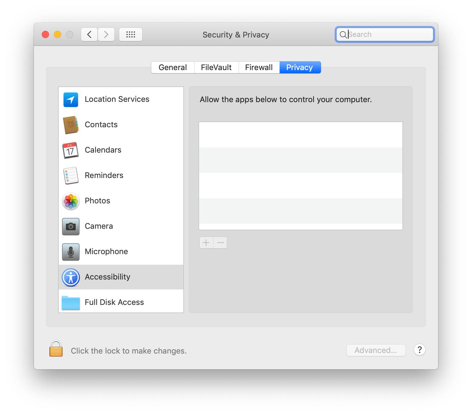 I'm trying to get my Wacom Intuos S tablet to work correctly on OS X Mojave 10.14.6. However, the Wacom driver needs permission from Security & Privacy > Privacy > Accessibility before it can function correctly.