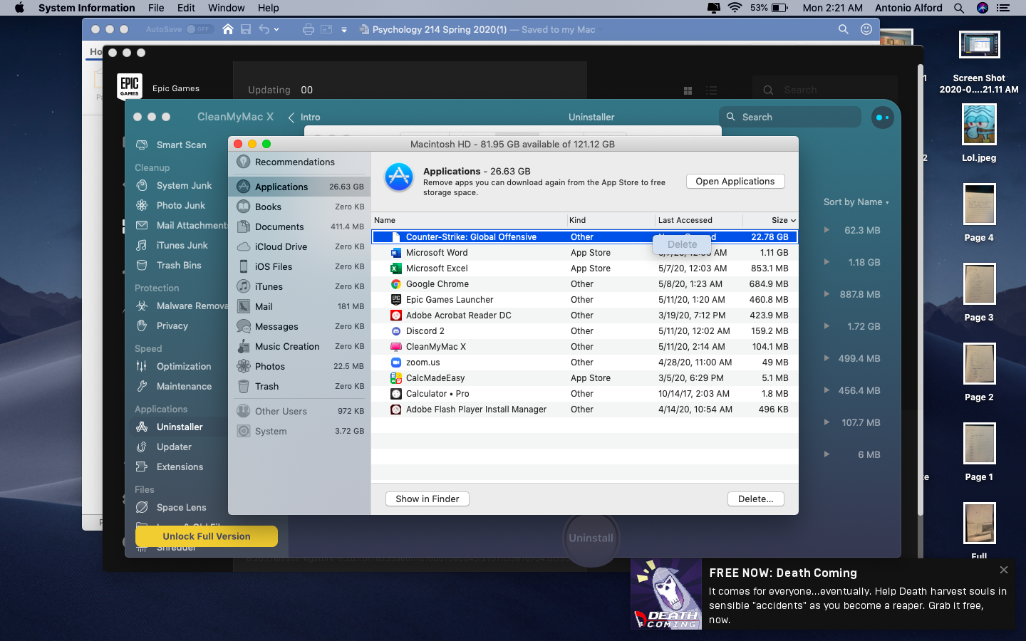 I can't seem to delete this file and when I try to find it using finder, nothing comes up. Its taking up a good amount of space but I can't seem to move or delete it. Does anyone have a solution?