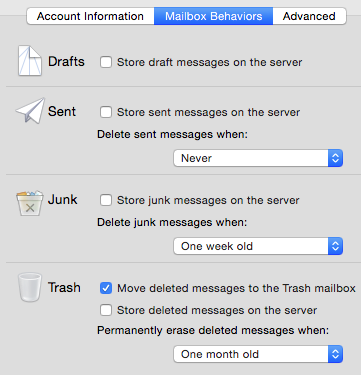 Check Mailbox Behaviors for each your mail account. May be you selected "Store messages on the server".