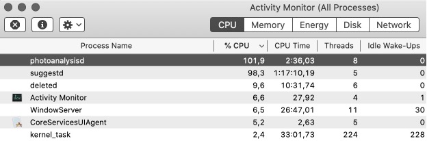 The only other processes that seem to eat up similarly high CPU amounts are background services possibly related to indexing and synchronization of files. Not sure if this is related or logical to include in this post, but it seems for a reason that EtreCheck puts these alongside photoanalysisd as CPU hungry.