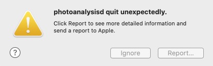 Since a couple of weeks the background photoanalysisd service crashes at random moments. This will invoke the crash reporter multiple times per day, which is, to put it mildly, rather annoying. Is there an easy fix/patch or a way to pause/stall the service until a later moment?
