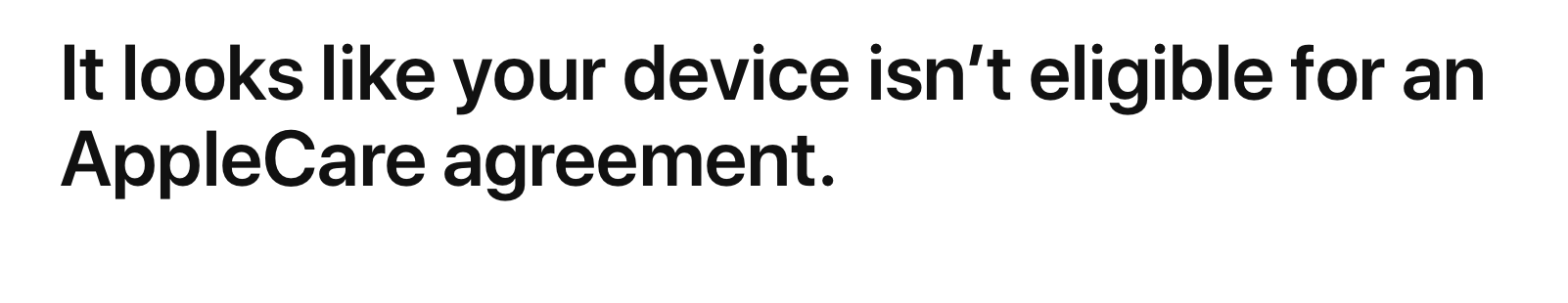 I bought a new MacBook at the weekend, from a non Apple store, and separately just tried to buy AppleCare+ for the laptop, I get a message that my MacBook is eligible, then when I click on it, it tells me it's not. What's going on?