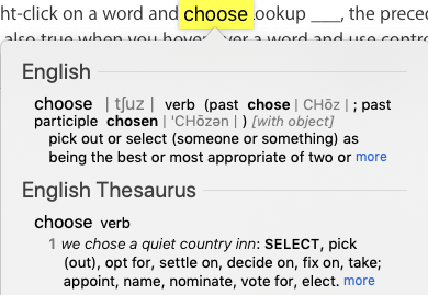 And if you control/right-click on a word and choose Lookup ___, the preceding dictionaries results will be shown in the same order. This ordering is also true when you hover over a word and use control+command+d, or a three-finger tap (if configured in Track Pad preferences).