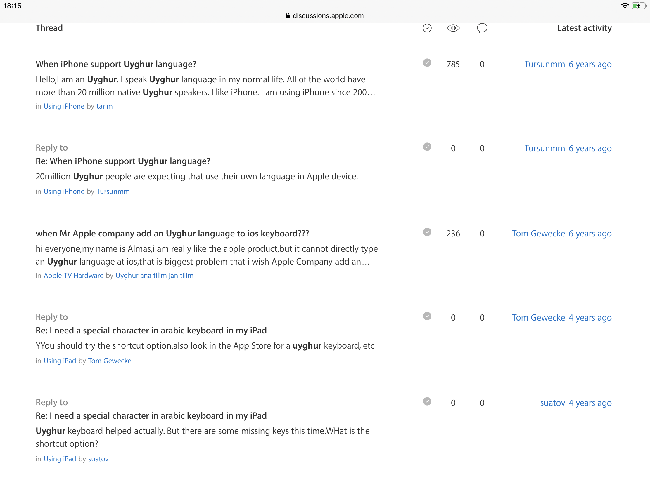 BELOW ARE THE MANY REQUESTS ABOUT UYGHUR LANGUAGE OF OTHER USERS IN MANY YEARS AGO :