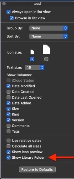 The view option to show library is my default, but nonetheless, the root's home is an invisible path, startupVolume:private:var:root:.