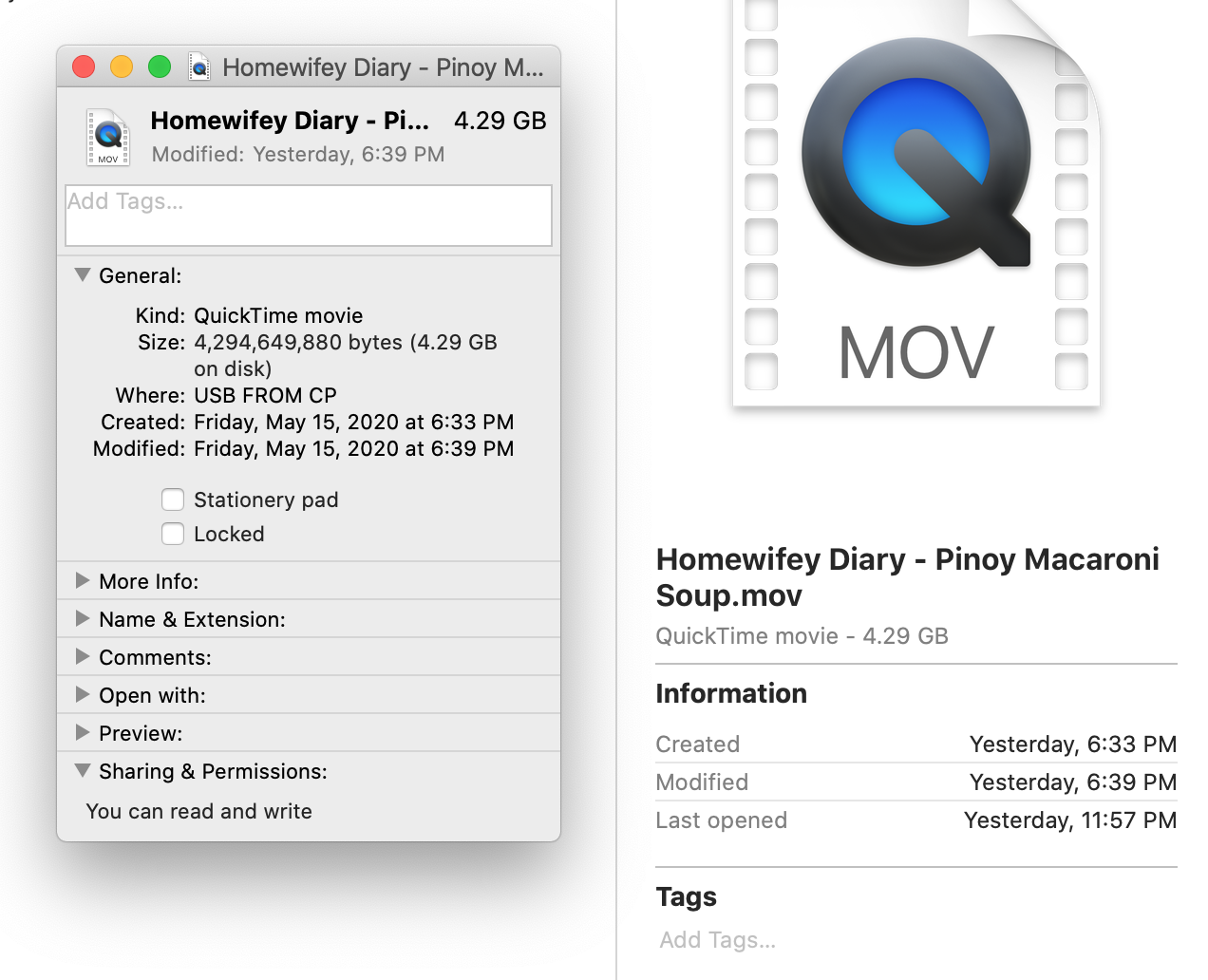I created a 16:22 min video on my imovie and saved it both in computer and external drive. However, it won't play and the file saved looks like this: