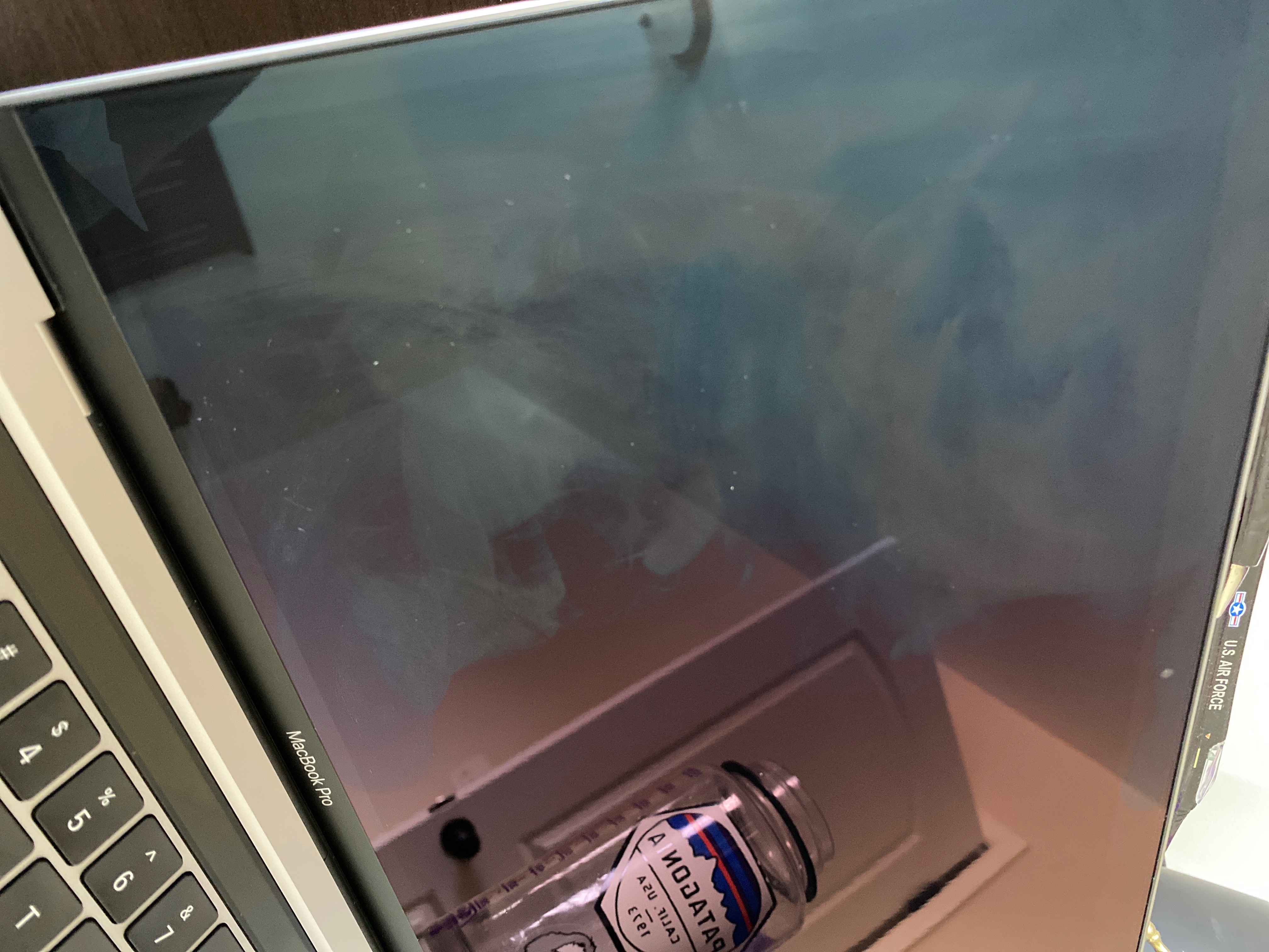 I finally got my new macbook in yesterday and this morning i noticed some dust on one side. I used a glasses cleaning cloth to wipe the little part and then these smudges showed themselves. apple says to use damp cloth but that caused this to happen. any suggestions?
