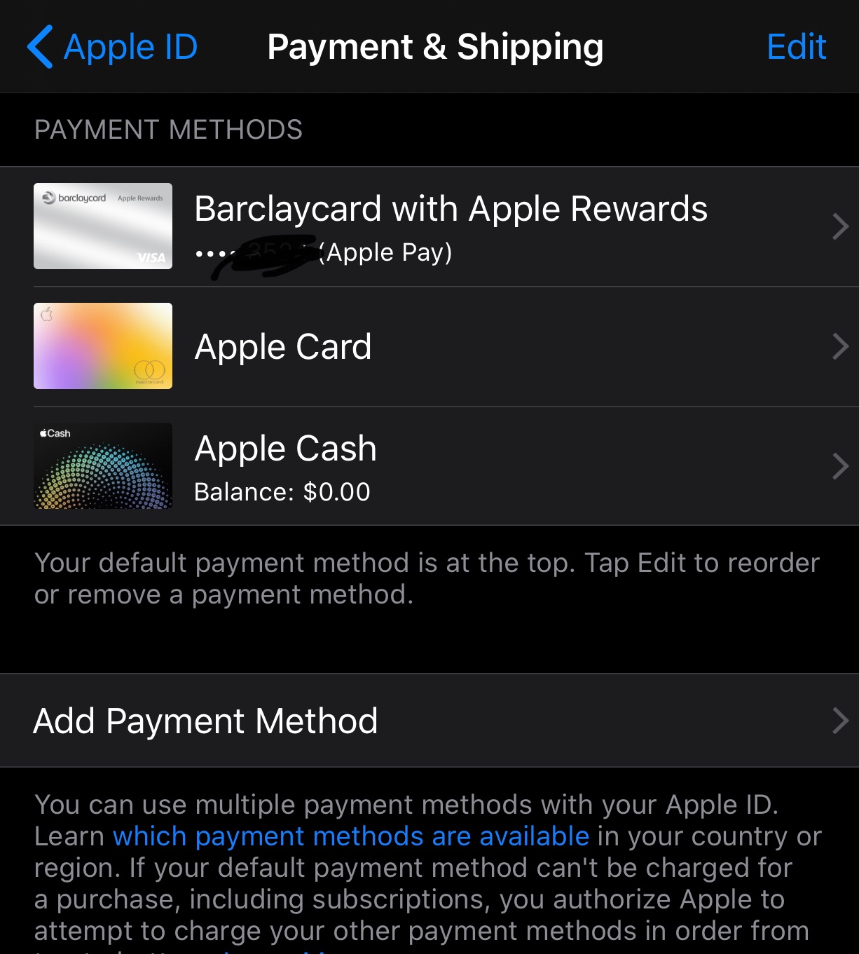 can’t add American Express card as my default Apple ID credit card! I want it to be default for Apple Pay AND Apple ID.