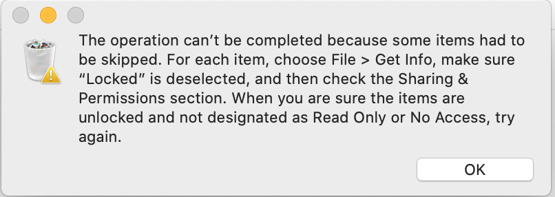 I'm trying to delete Xcode 9. I dragged the application to the trash and tried to empty it. It seems to have deleted most of the app but then stopped. I can't delete the remainder - there's still an app icon with a grey slash over it in the trash. When I try to delete it I get this dialog: